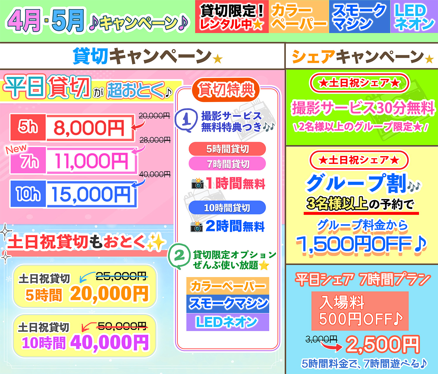 ■休日イベント貸切料金【5月末まで】
