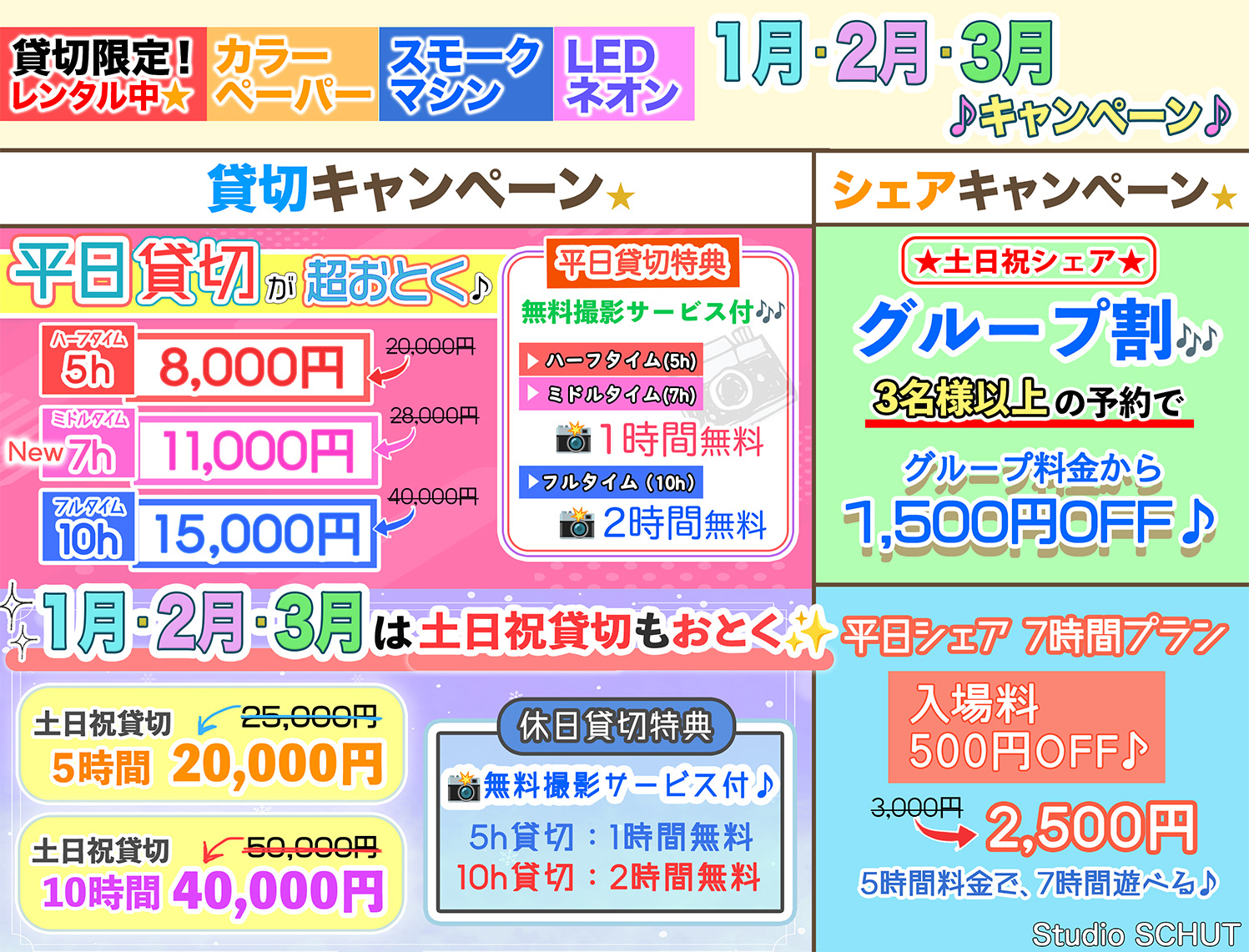 現在、お得な料金で貸切利用できるキャンペーンを実施中♪